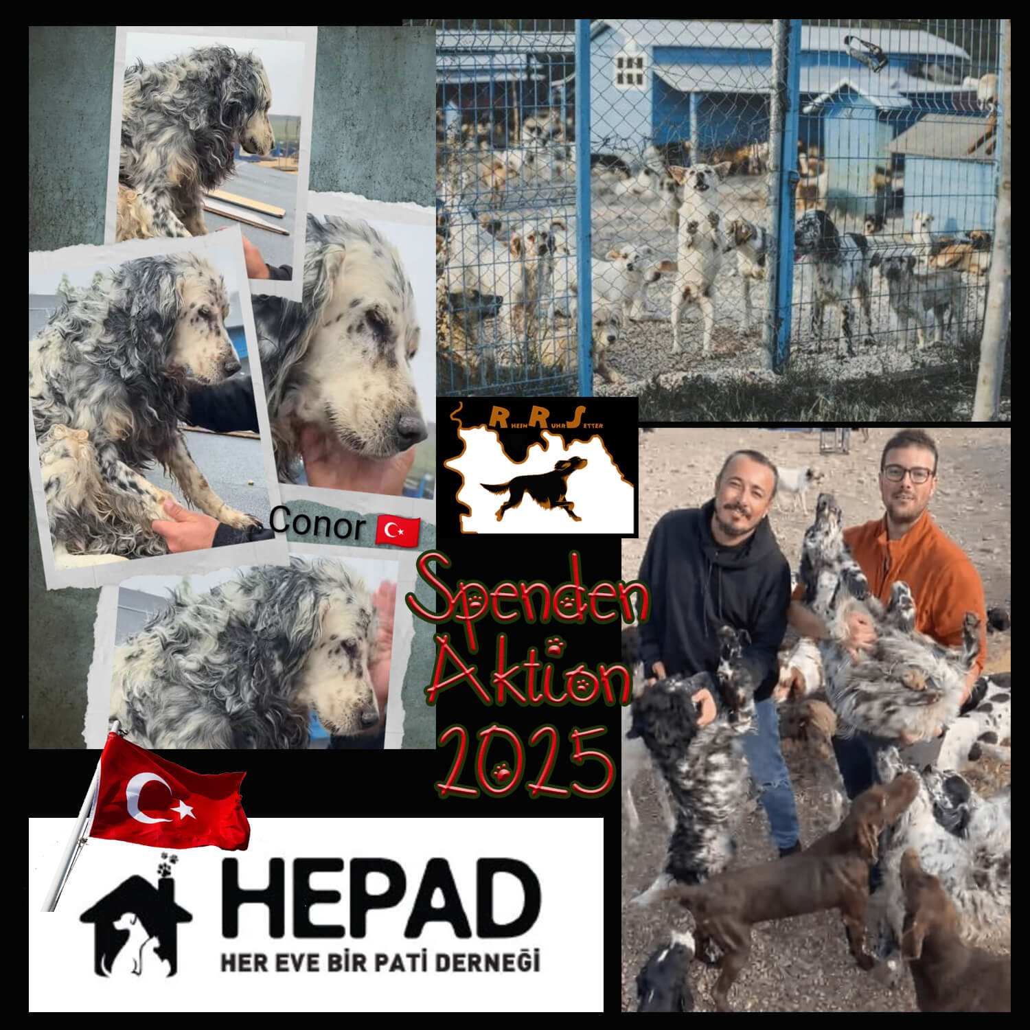 Der Betrag geht an die türkische Tierschutzorganisation HEPAD, die über 1.000 Hunde - darunter über 100 Setter - versorgen und für sie ein schönes neues Zuhause suchen und häufig auch finden. Oldie English Setter Conor erhielt mit einem Teil unserer Spende das Ticket zur Ausreise aus der Türkei nach Deutschland. Wir spenden an HEPAD, weil wir uns hier sicher sind, dass unsere Spende hier wirklich gute und sinnvolle Verwendung findet, auch weil Wert darauf gelegt wird, die Hunde nicht nur ins Ausland zu vermitteln, sondern auch innerhalb der Türkei ein Bewusstsein für den Tierschutz zu schaffen, super wichtig! Emre und sein Team sandten uns direkt nach Erhalt der Summe ein tolles Danke-Video.